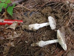 | This collection of Amanita onusta was found growing beneath white pine trees in June. |