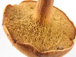 | The pores of Chalciporus piperatoides are angular and irregular and bruise blue, then changing to reddish brown. Olive spore print. |