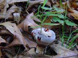 | These pictures show the fruiting body of Hydnellum caeruleum at early stages of development. |