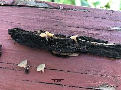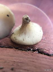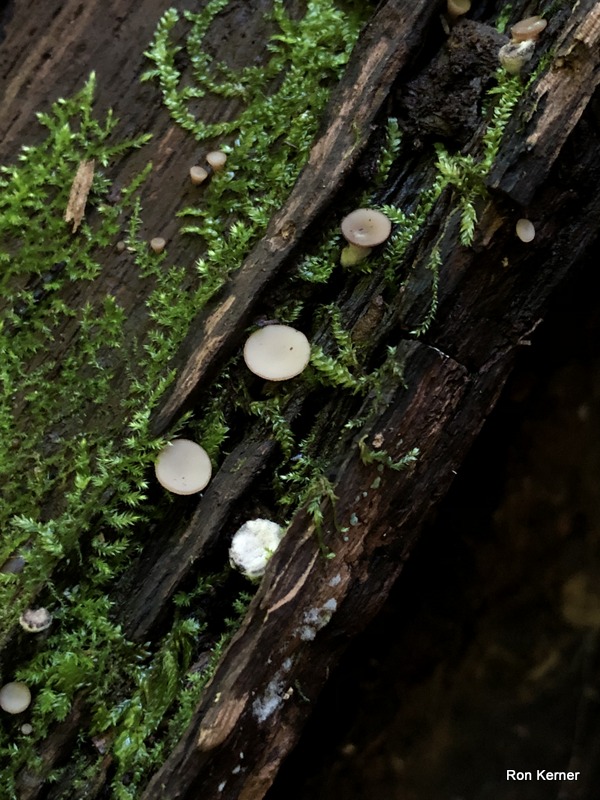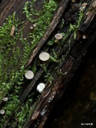| As a saprobe (decomposer) this tiny cup fungus grows from rotting wood (which it helps to rot). Fruit body has a hard consistency. Fertile surface color can vary from pearl white, off-white, gray, and brownish. Under-surface finely hairy. Usually exhibits a short stalk, or stem. Order Helotiales. |