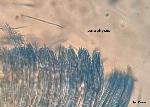 | The specific epithet of this fungus (macrospora) means large spores; they measure 22-34 x 6-8 µm. Paraphyses are abundant and thread-like. |
