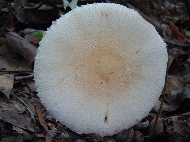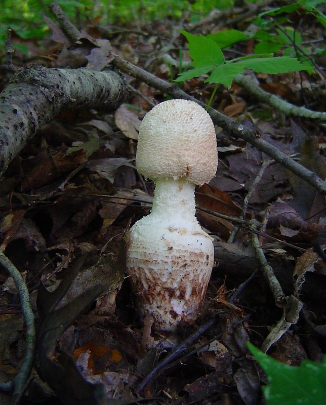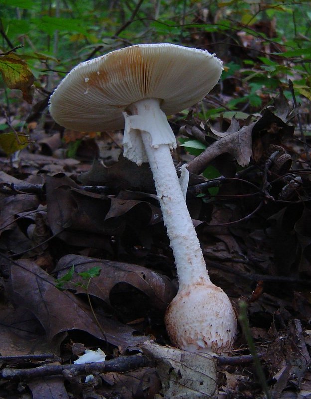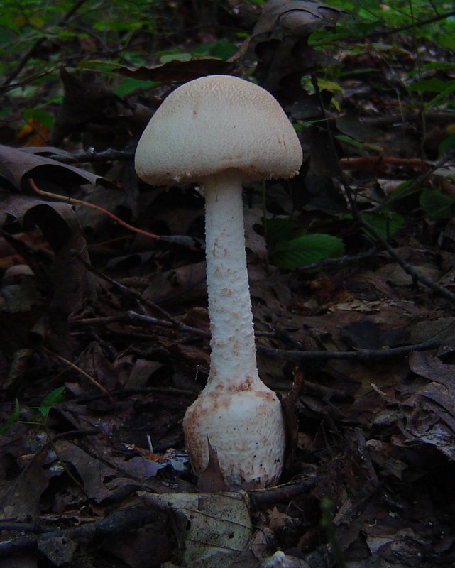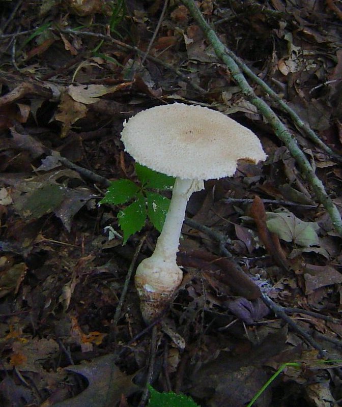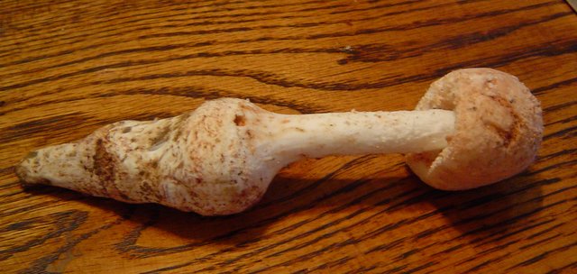 | The largest portion of this mushroom's basal bulb develops above ground. This specimen was 10 inches tall, cap 5.5 inches wide. Big mushroom! |