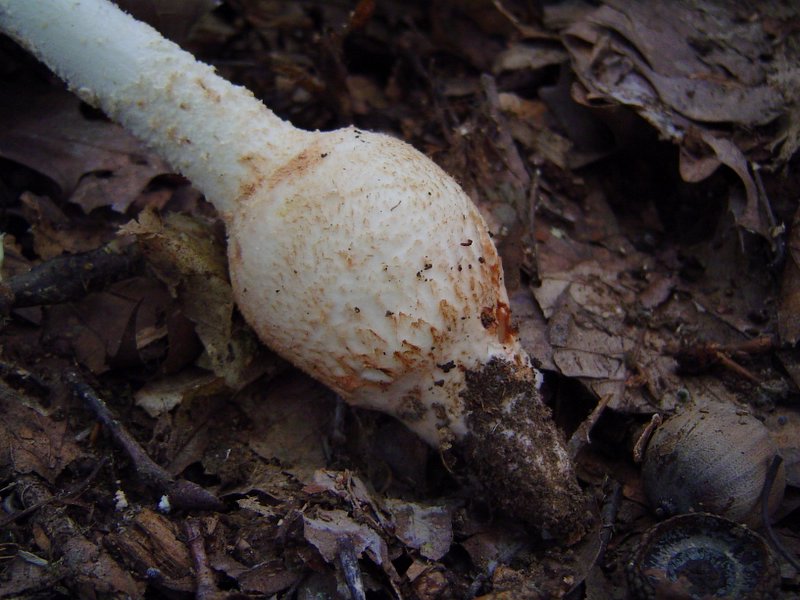| Common name: Carrot Foot. These collection were found in the month of August in oak/beech woods. Rod Tulloss, Amanita expert, warns: "I have been told on a number of occasions that the stipe's bulb is edible. Considering the poor knowledge of toxins in section Lepidella and the established fact that kidney and/or liver failure is associated with ingestion of species in section Lepidella, I cannot recommend that this species be eaten." |