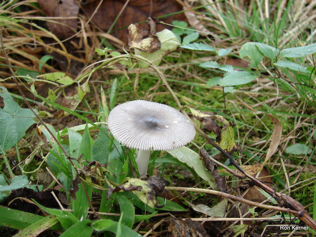 | The Grisette mushroom. Amanita, section Vaginatae. There are several of these gray, smooth-capped and veil-less Amanita mushrooms which may be part of a species complex (may contain more than one species). Can be found summer and fall, often in urban settings. |