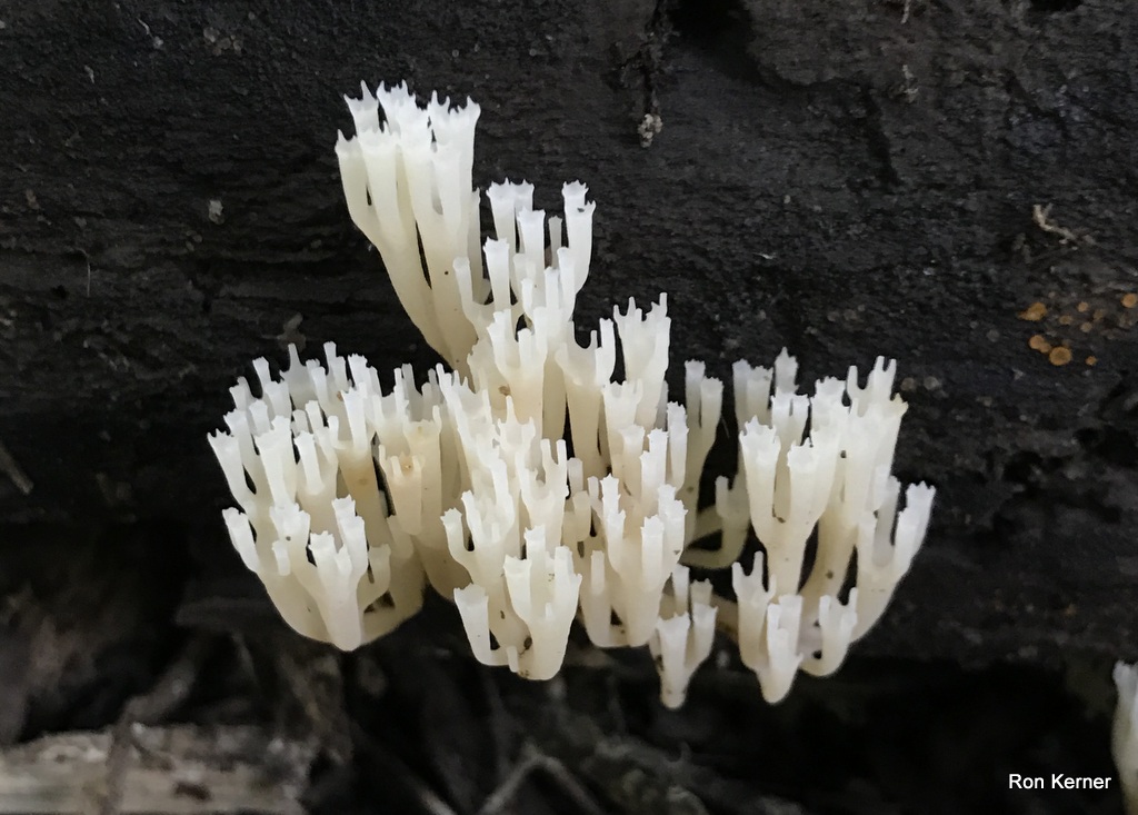 | Clavicorona pyxidata is a former name. Distingishing features of Artomyces pyxidatus are its crowned tips and the unique branch structure; compare to Ramaria stricta. White spore print; grows on wood. |