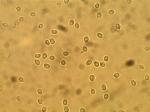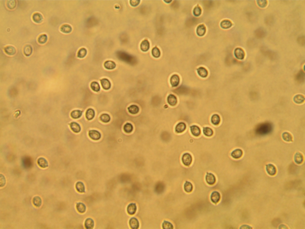 | The roundish spores of Auriscalpium vulgare measure 3.5-6 µ. |