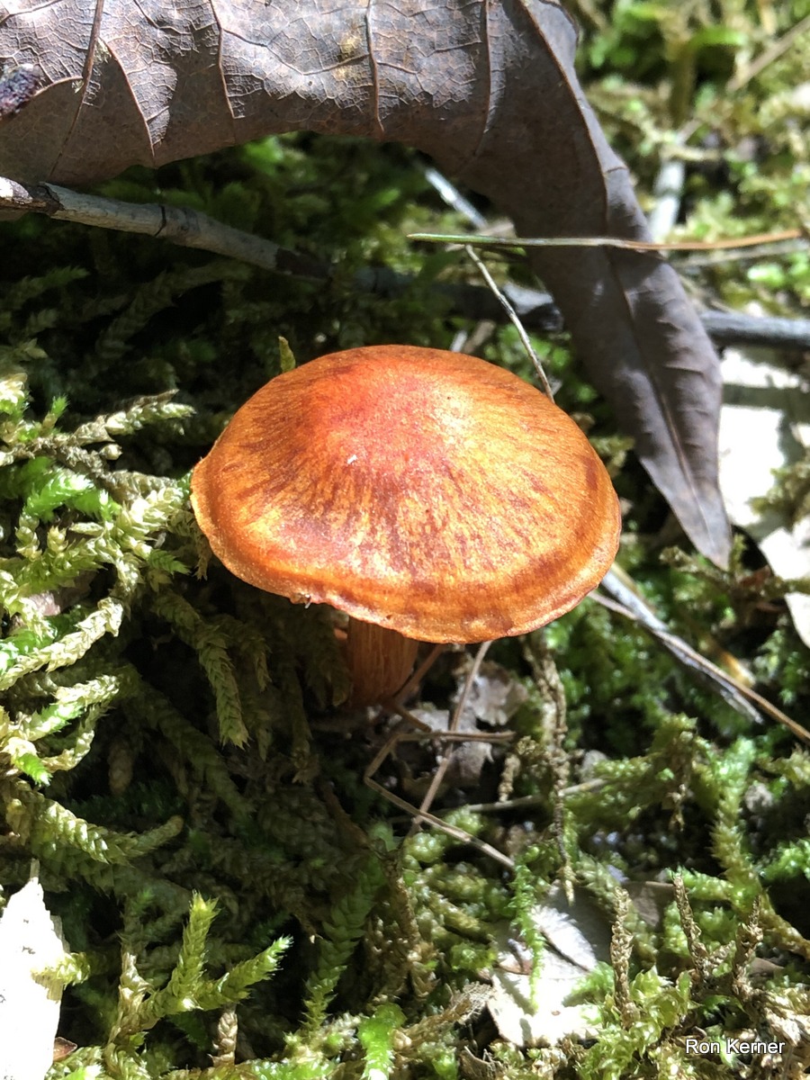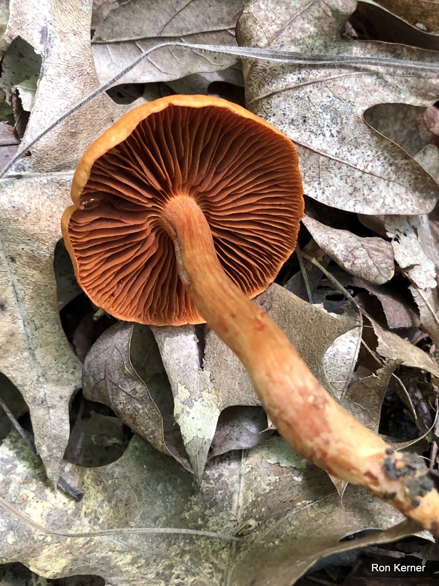 | This beautiful collection of Cortinarius hesleri was found in August under oak. Cap color has been described as Brazil Red (brownish red), Burnt Sienna (cinnabar red, brownish red), Mars Orange (brownish orange) and Orange Rufous to Xanthine Orange (reddish orange to brownish orange). Named for Dr. L. R. Hesler, noted mycologist, former Professor, and Chairman of the Botany Department and Dean of the School of Liberal Arts, University of Tennessee, Knoxville. |