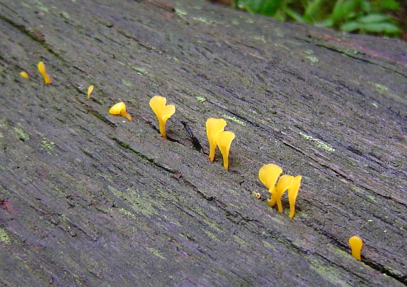 This tiny fan shaped jelly mushroom is found growing