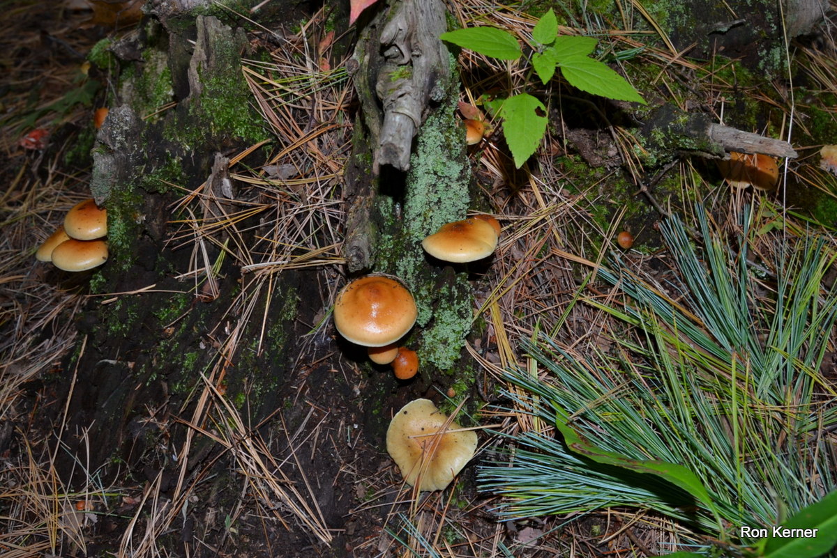 | This gregarious mushroom grows from well-rotted conifer wood. Purple-brown spore print. Naematoloma capnoides is a synonym. |