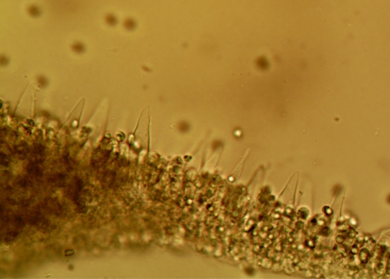 | The abundant pleurocystidia of Mycena niveipes. |